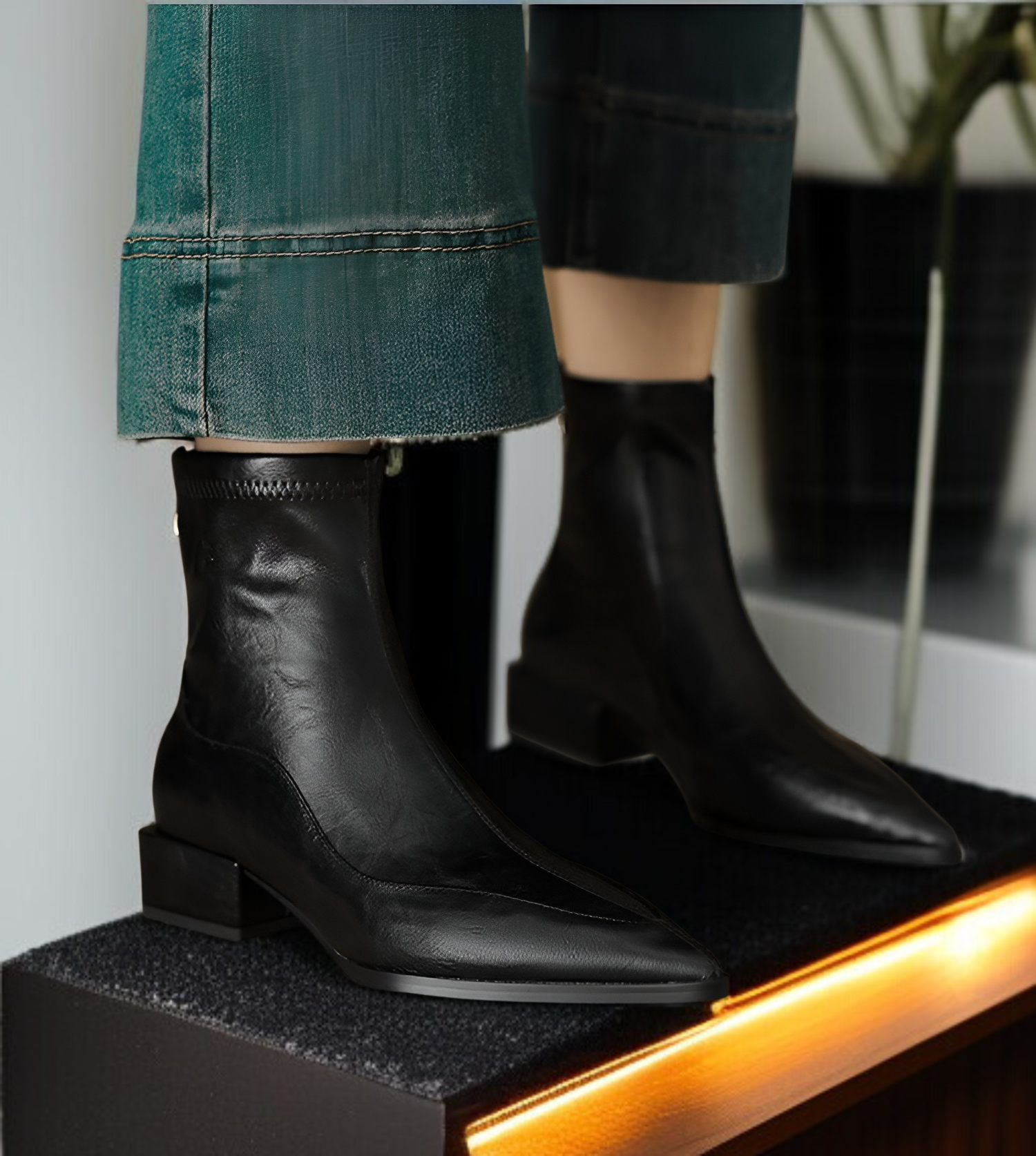 尖った伸縮性スキニーブーツ2025秋冬新作厚底ショートブーツ全体画像
